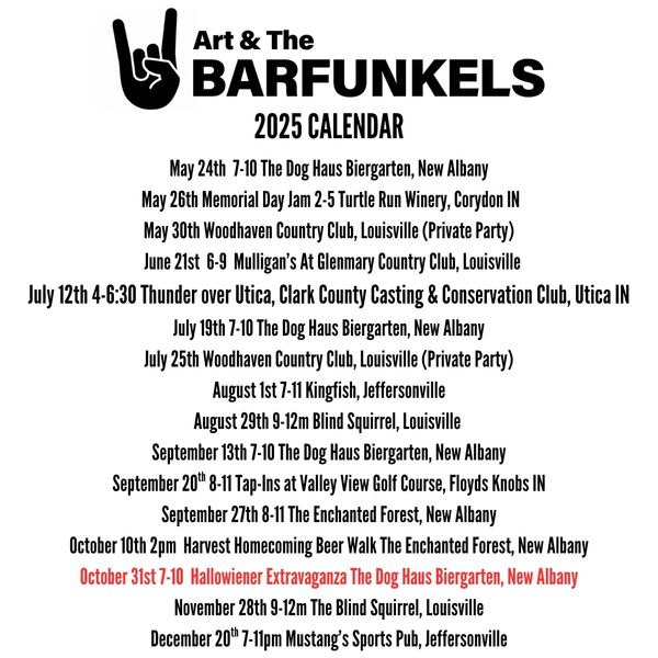 The classic rock band Art & The Barfunkels 'World Tour 2025' is underway! Come see us for an unforgettable night of live music in the Louisville area and join the Barfunkel Nation as we deliver top-notch event entertainment. Don't miss out on the fun with the best party band around!